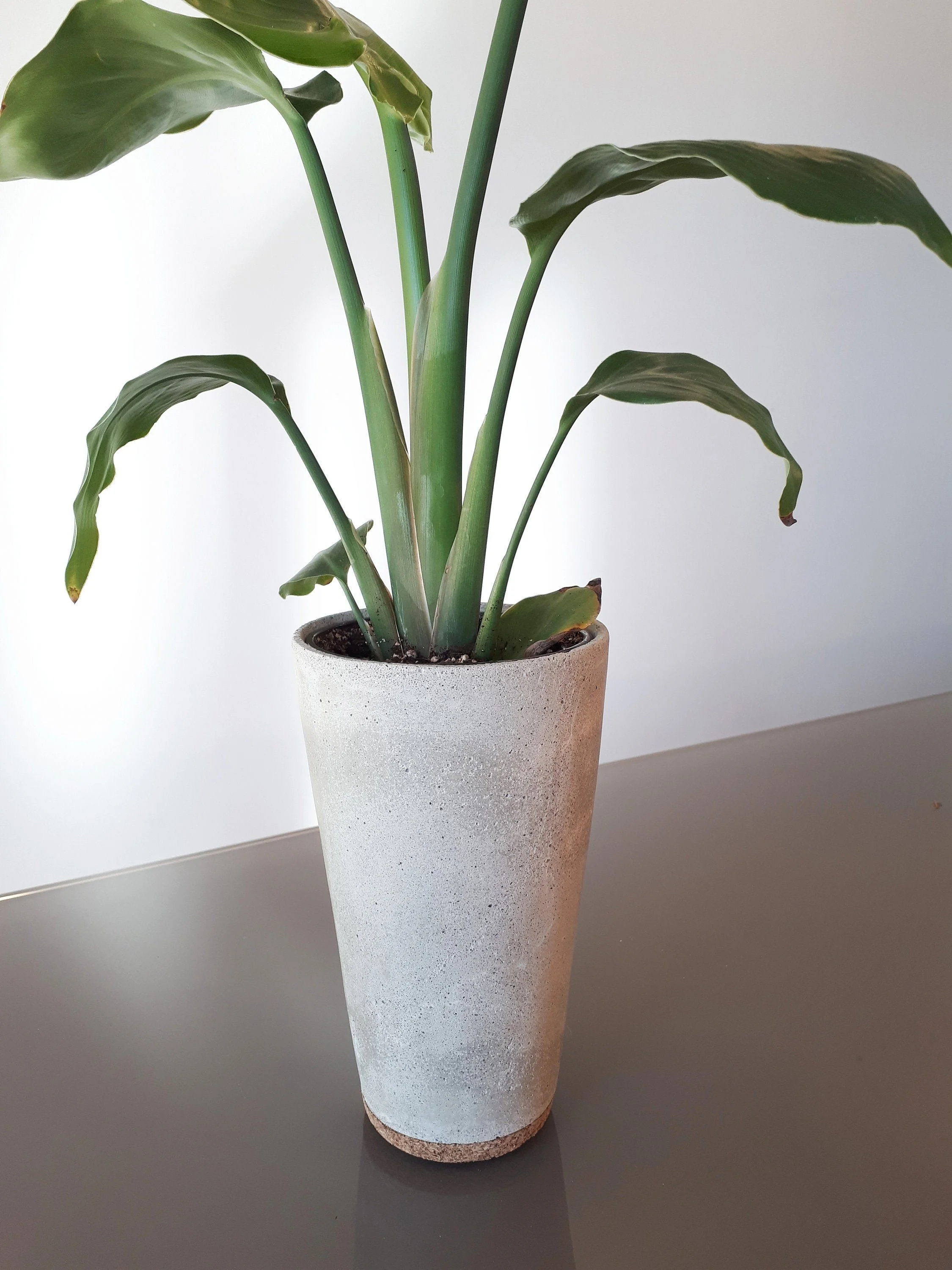 Offrez une petite touche de modernité à vos plantes d'intérieurs, ce cache-pot en béton brute avec liège à sa base est très minimal et fonctionnel. Sa matière donne un côté moderne à votre intérieur. Chaque pot est fabriqué comme s'il était destiné à ma propre maison, chacun a une beauté unique avec de petites différences naturelles qu’offre le béton. (Hauteur: 7,5po - 9cm, largeur : 4,25po - 11cm). À noter que pour chaque livraison, le produit est bien protégé et emballé avec soin.